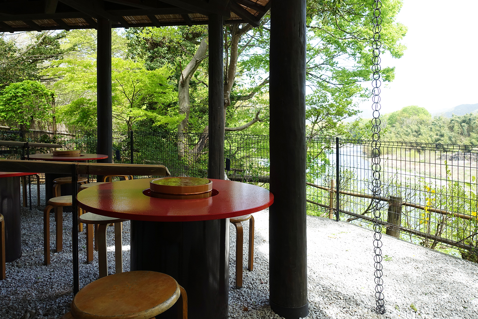 川から吹き抜けている穏やかな風を感じながら、川の流れる音を聞き、木々の木漏れ日や太陽の光を緩やかに取り込む屋根の下で、冷たいそうめんに舌鼓を打つという、五感すべて使って空間を体感し、記憶に残る空間を目指しています。